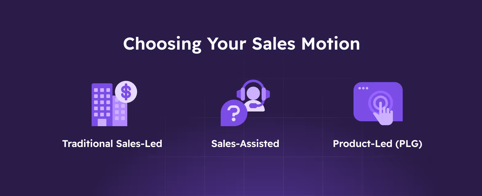 How you structure your sales motion will largely determine the shape your inbound team will take, and we can broadly speak about three big categories: sales-led, sales-assisted, or product-led (PLG) motions. Each has different strengths and weaknesses, or to put it another way, they’re different tools for climbing different hills - or markets.